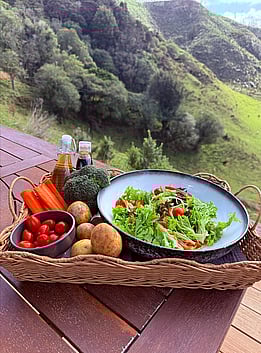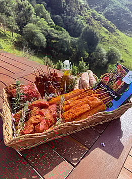 Our Dinner Hamper includes a generous selection of seasonal, locally sourced ingredients – perfect for a relaxed BBQ or indoor dining experience.